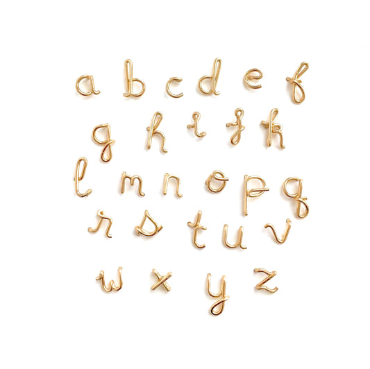14k Gold Pair of Initial Earrings. Small Dainty lowercase script earrings. Gold Letter Wire Studs.