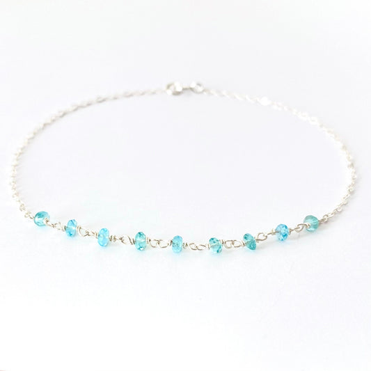 Aquamarine Anklet. Sterling Silver Anklet. Genuine Gemstone Ankle Bracelet.