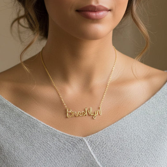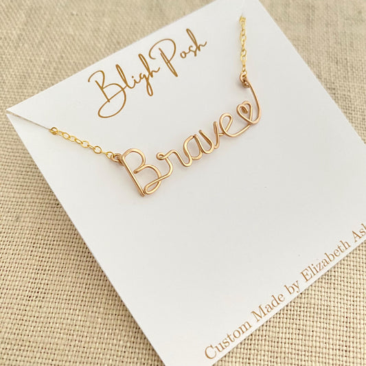 14k Gold Brave Heart Wire Name Necklace - Valentine's Day Gift