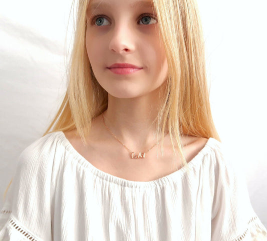 14k Solid Gold Name Necklace for Little Girls. Name Chain Pendant For Children