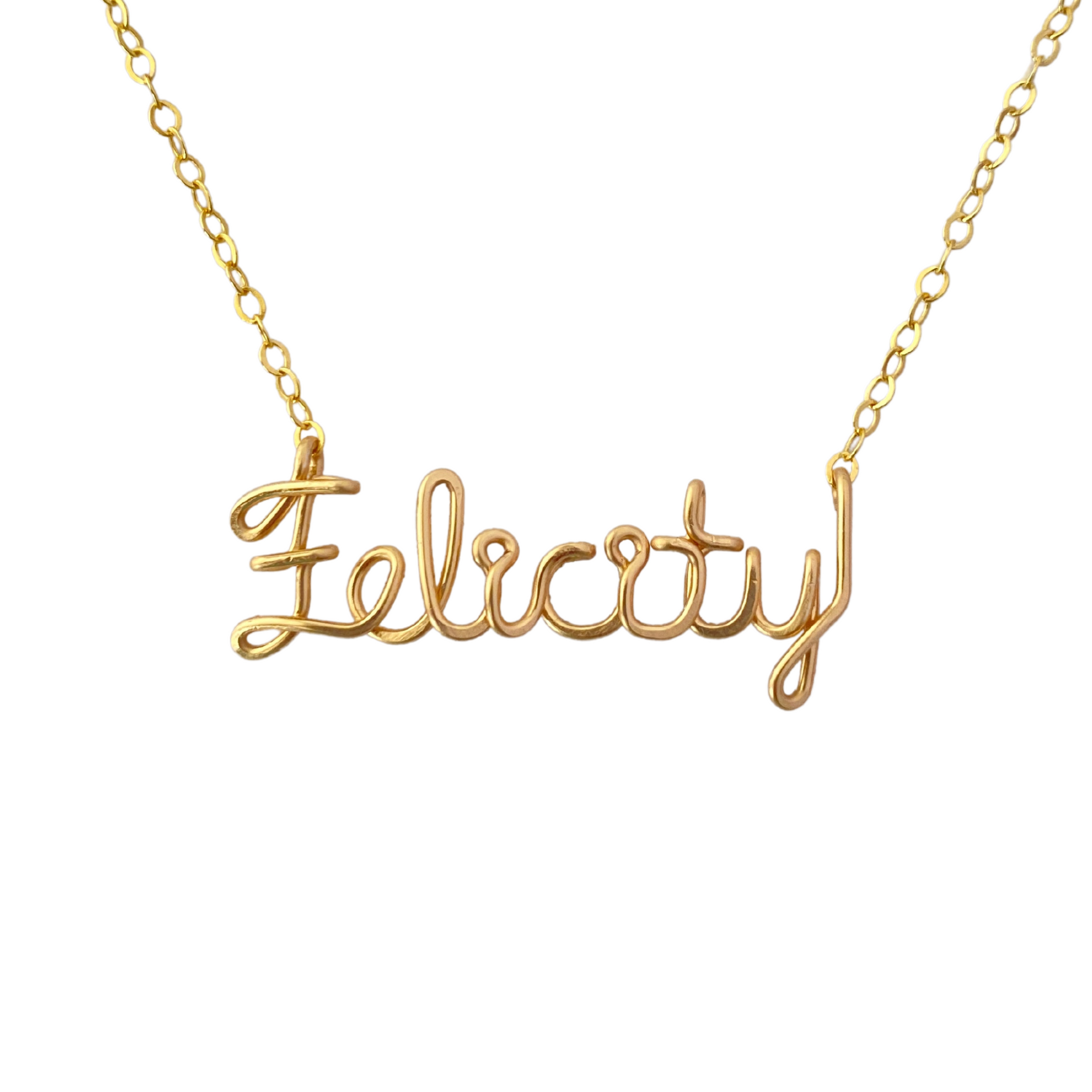 This custom-made, heirloom-quality gold name necklace is a perfect gift for the special little girl in your life. Each necklace is handmade with care using 14k solid gold wire, ensuring durability and a brilliant shine that lasts. Designed for babies, toddlers, and preteens, these necklaces come in lengths of 12 to 15 inches, and are crafted to fit comfortably around young necks.