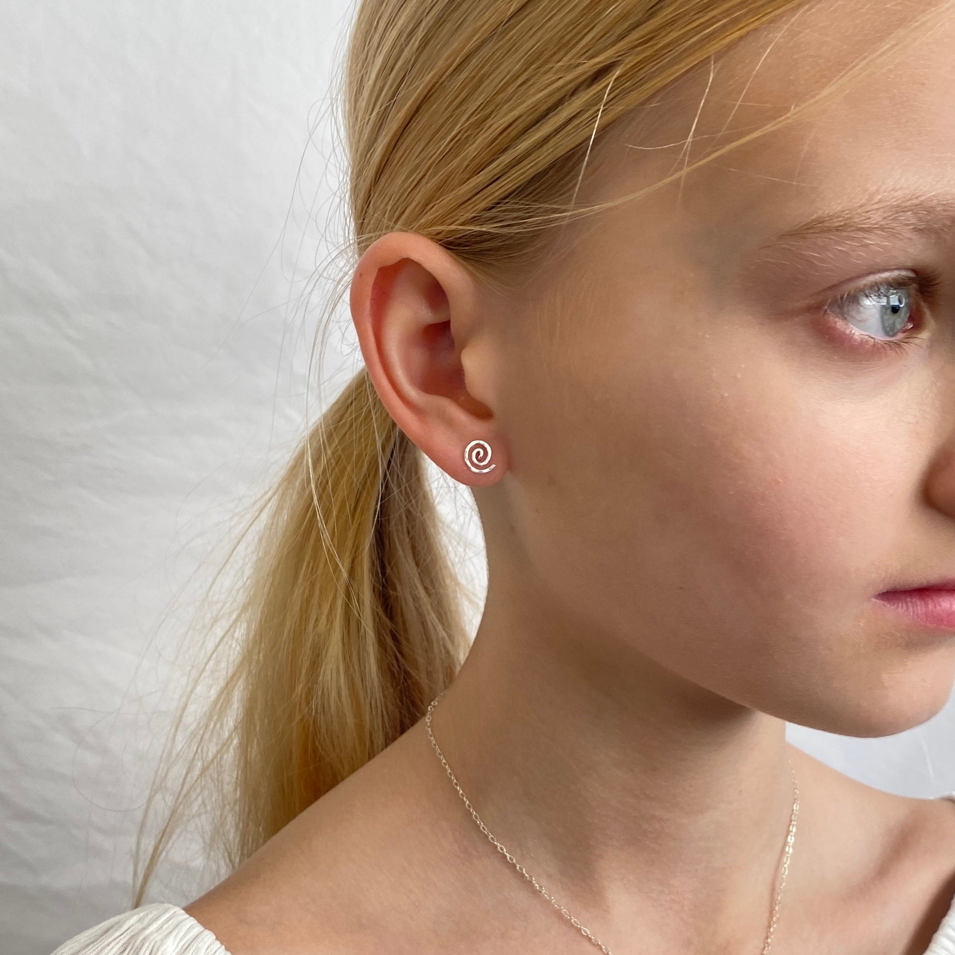 14k solid gold is perfect for young ears, sensitive ears, and can be worn in the shower, pool etc.