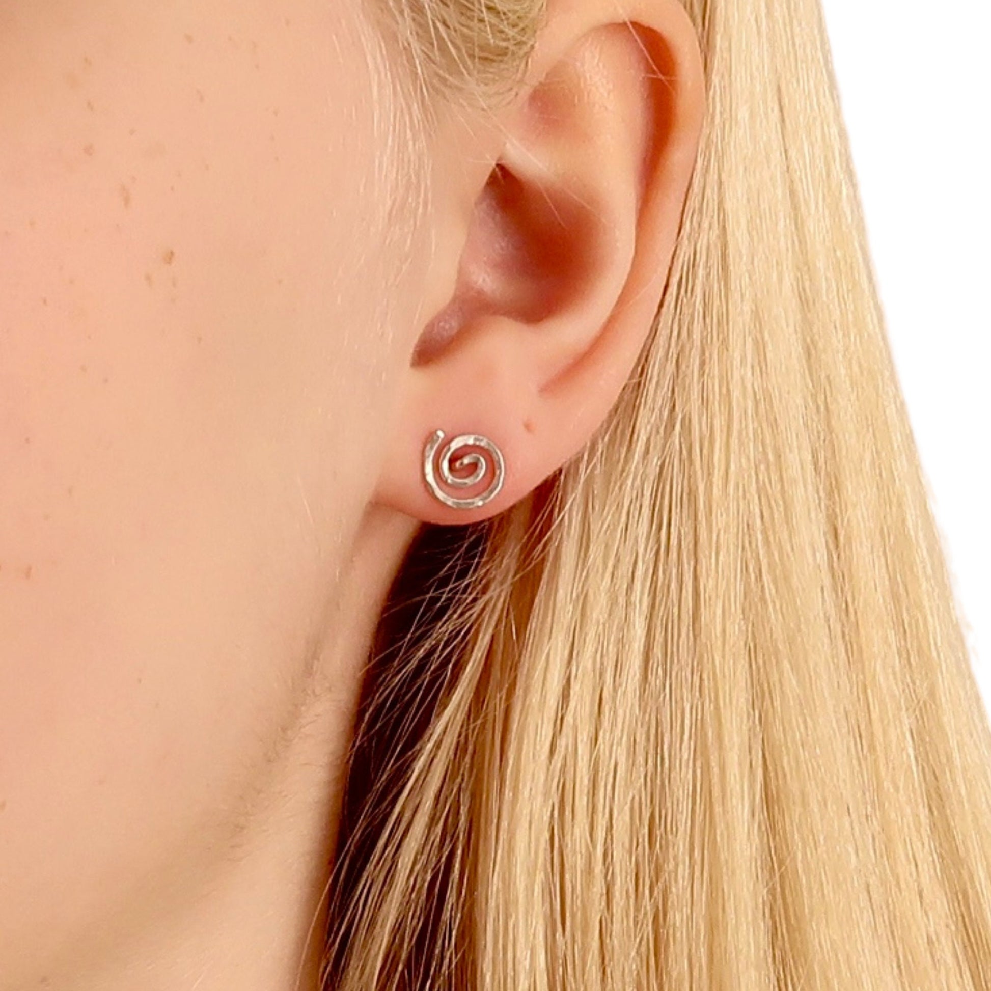 14k Solid Gold Spiral Stud Earrings: Hammered Swirl Design