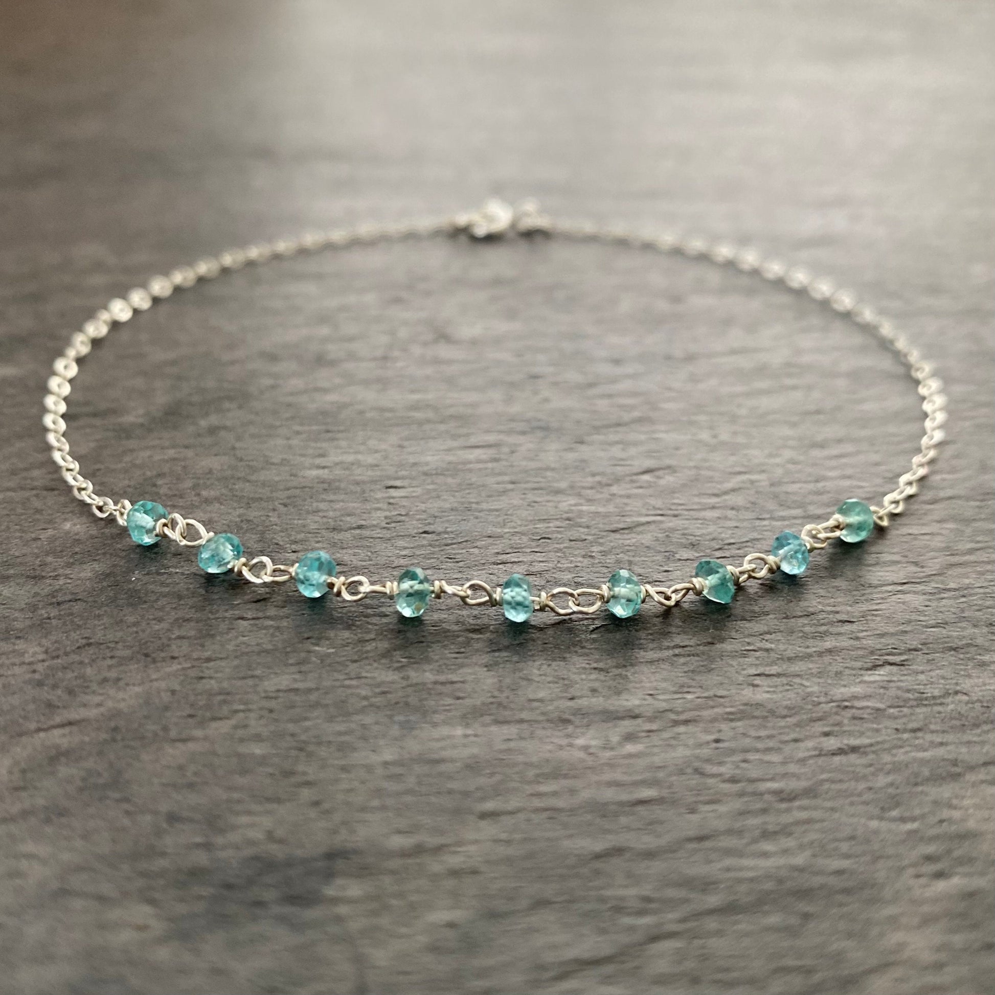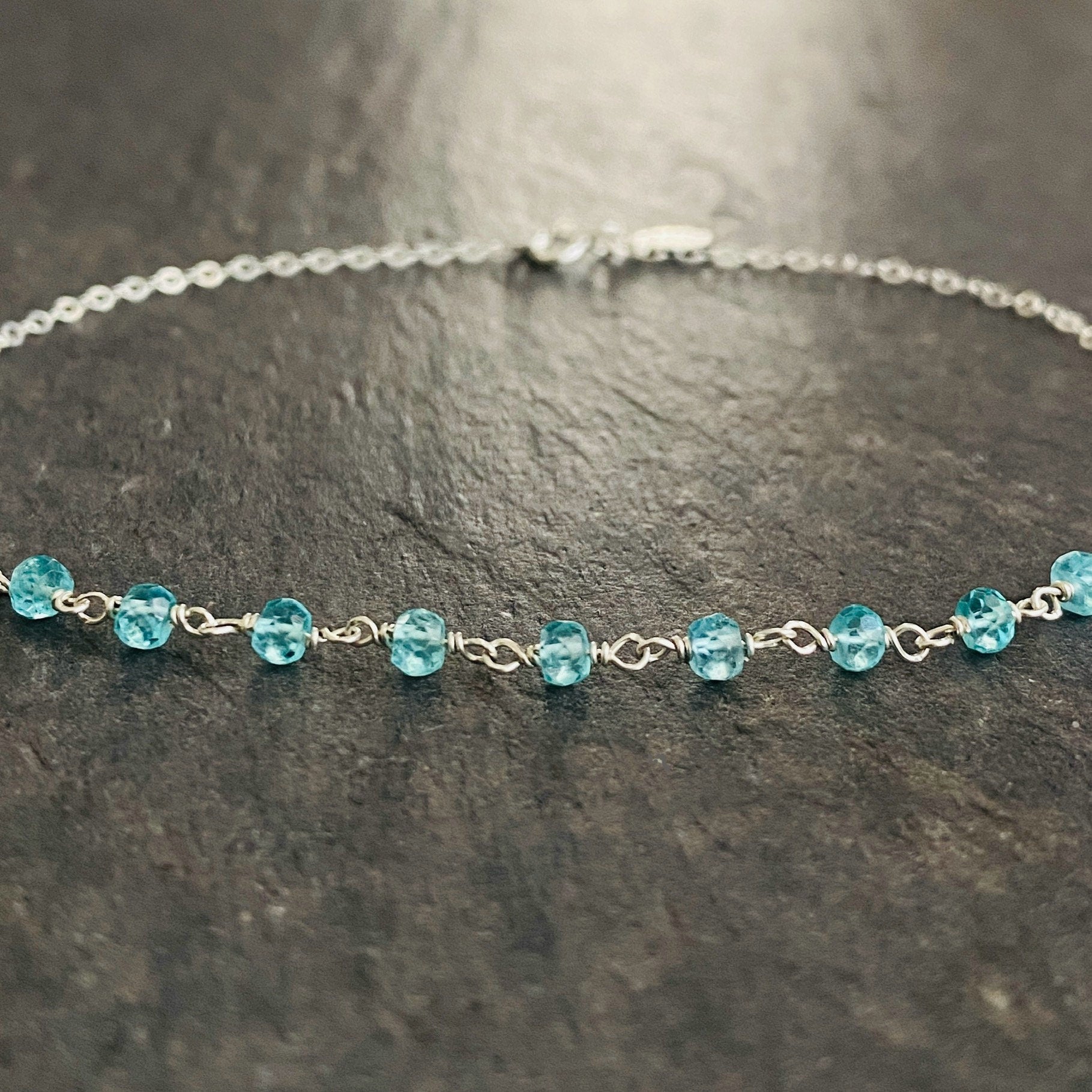 Aquamarine Anklet. Sterling Silver Genuine Gemstone Anklet.