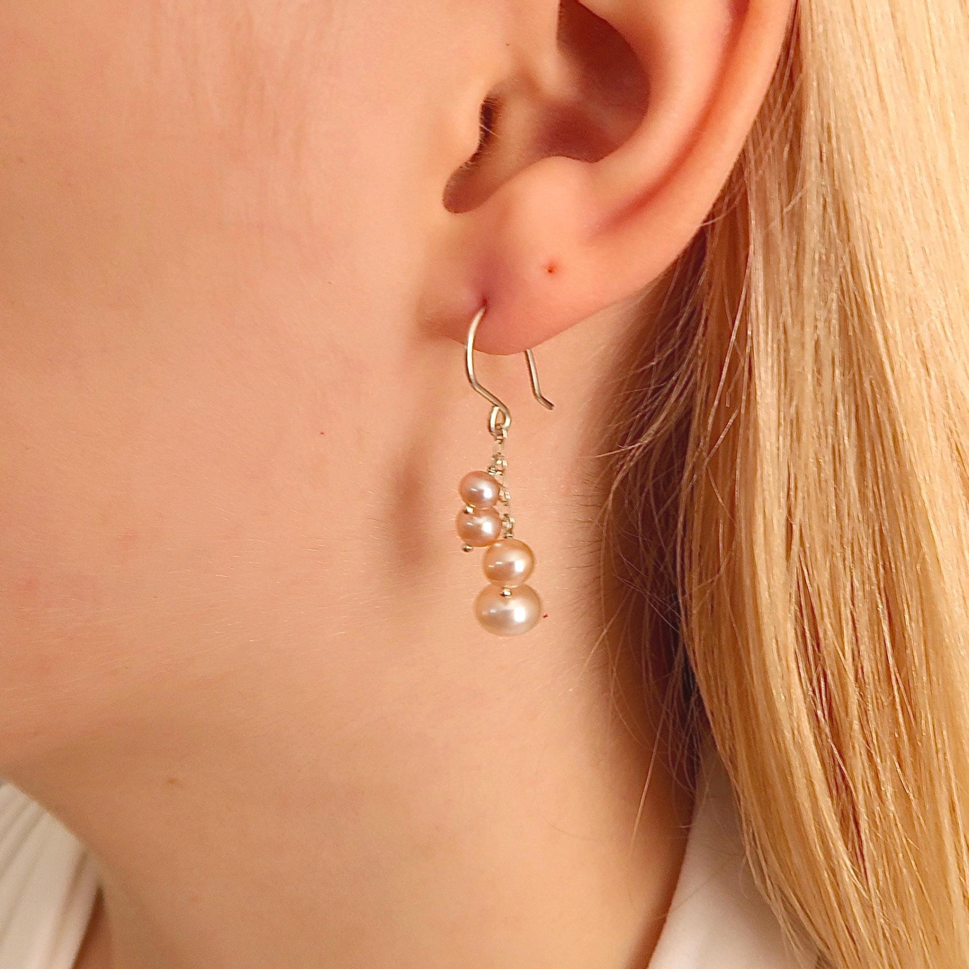 These dainty freshwater pearl drop earrings are a timeless classic with a soft, feminine feel. Each pair is handcrafted using natural freshwater pearls in beautiful off-white, blush pink, and creamy ivory tones, creating subtle variation and organic charm.