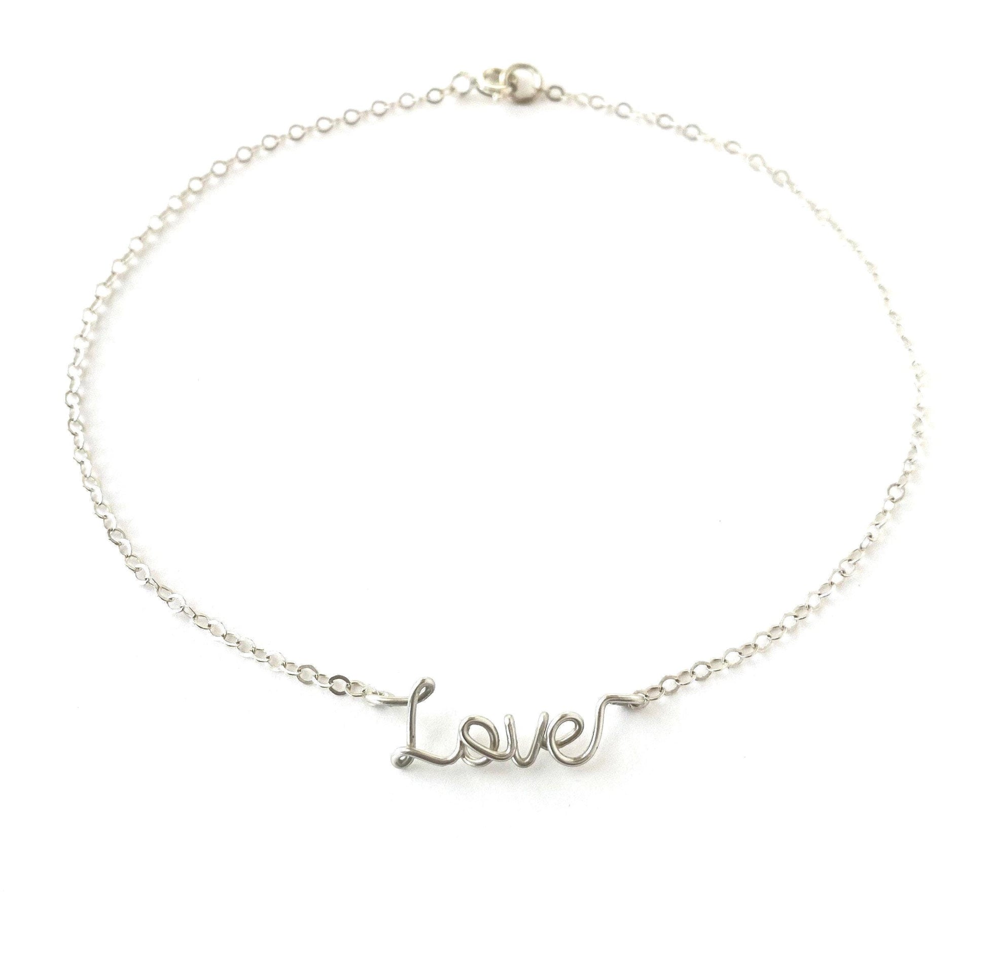 Nickel Free 14k White Gold Love Anklet: Delicate Tiny Word Charm Bracelet