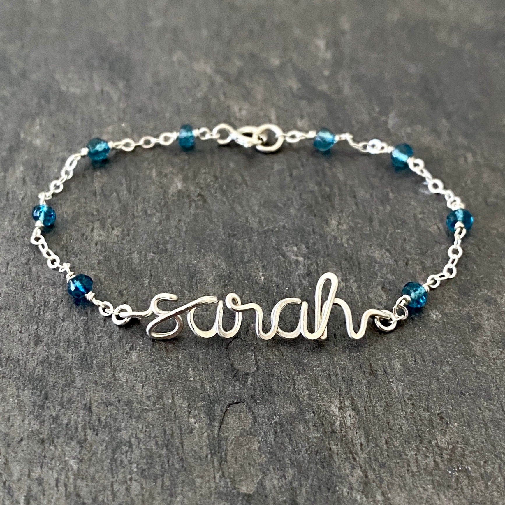 Pearl Name Bracelet: Sterling Silver Lowercase Script, Gemstone and Chain