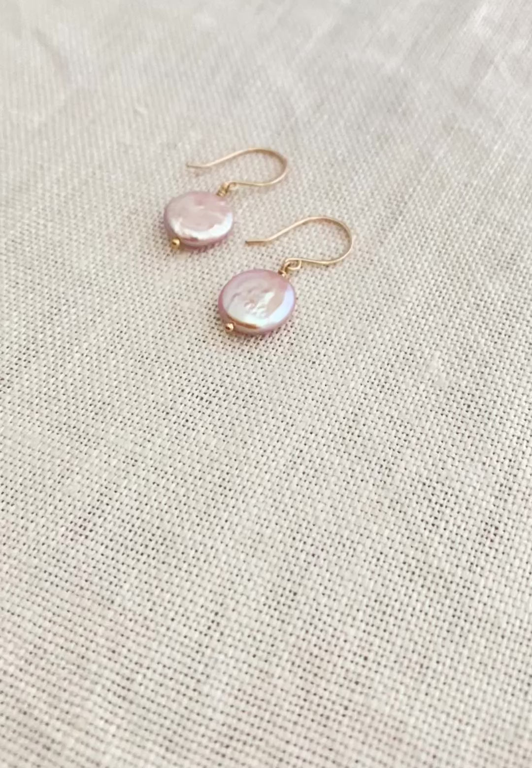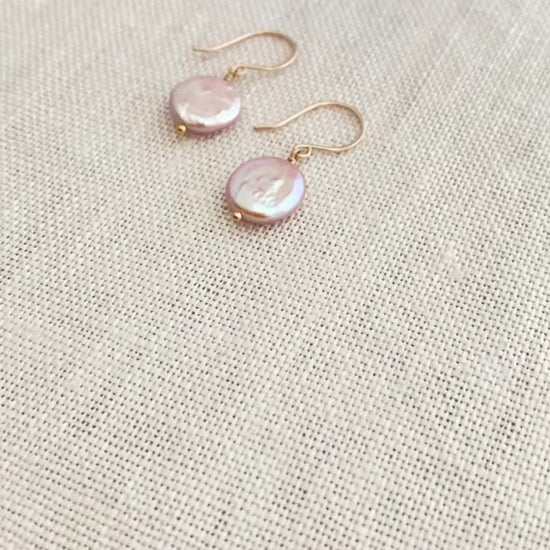 Pink Coin Freshwater Pearl Earrings. Handmade 14k gold filled ear wires