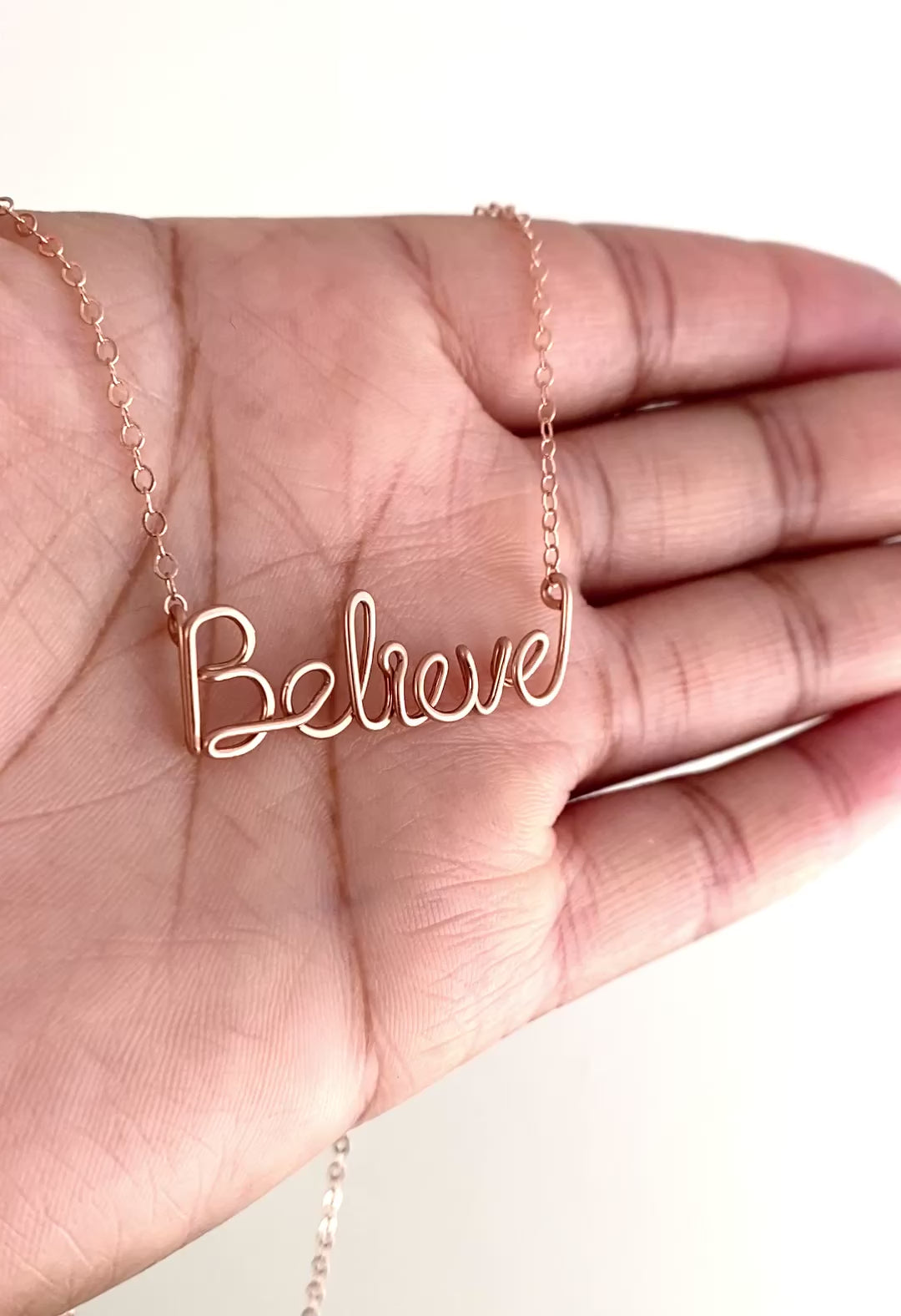 14k Rose Gold Filled Believe Necklace and matching chain.