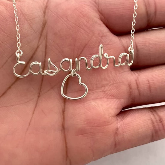 Personalize your necklace with up to 10 letters crafted in your custom script. The dainty 3-D open heart charm (1 cm x 1 cm) adds a symbolic touch, making this piece feel like a wearable love note.