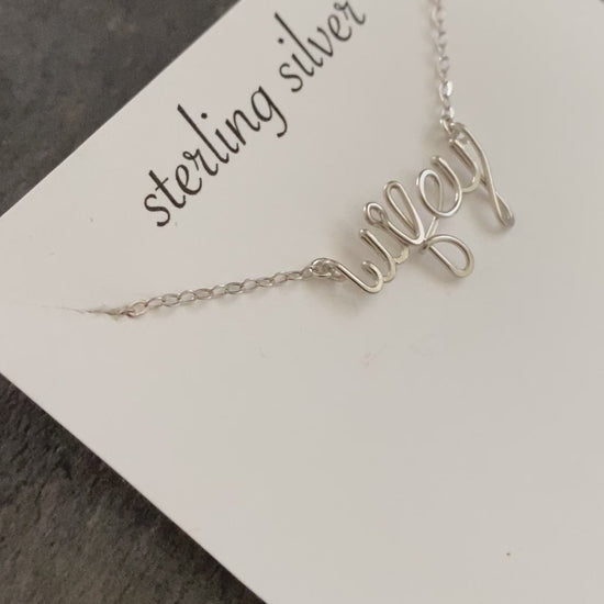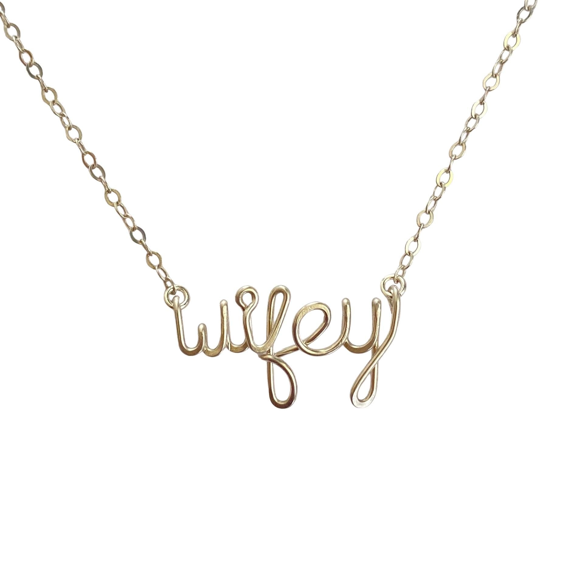 Handmade sterling silver “wifey” script wire pendant