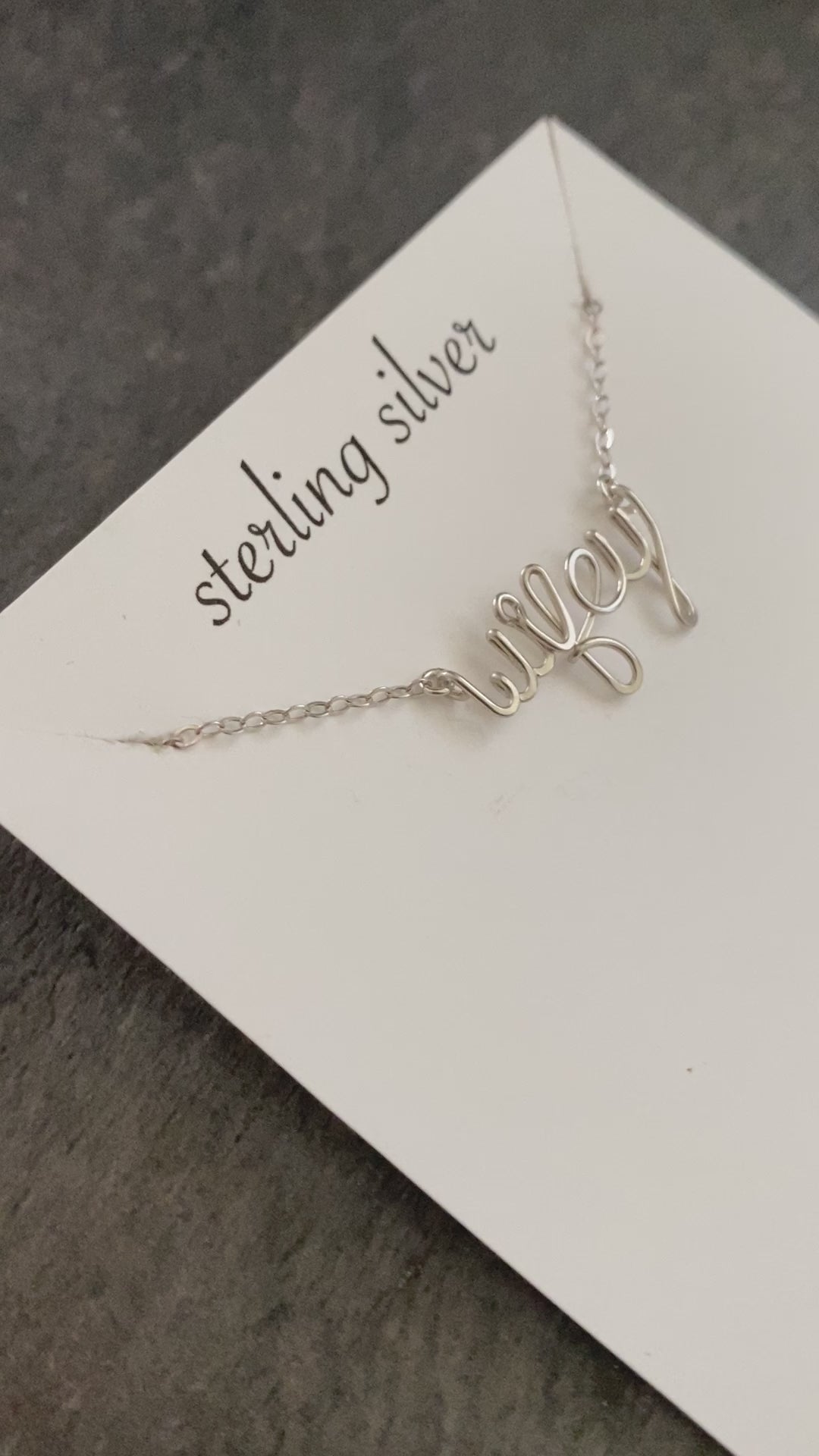 This sterling silver “wifey” script necklace is a modern love letter, delicately romantic, effortlessly luxe, and handcrafted to be as meaningful as the word itself. Formed by hand from sterling silver wire, each letter is gently hand-hammered to catch the light with a soft, luminous shimmer, giving the piece an heirloom-quality finish with a contemporary edge.
